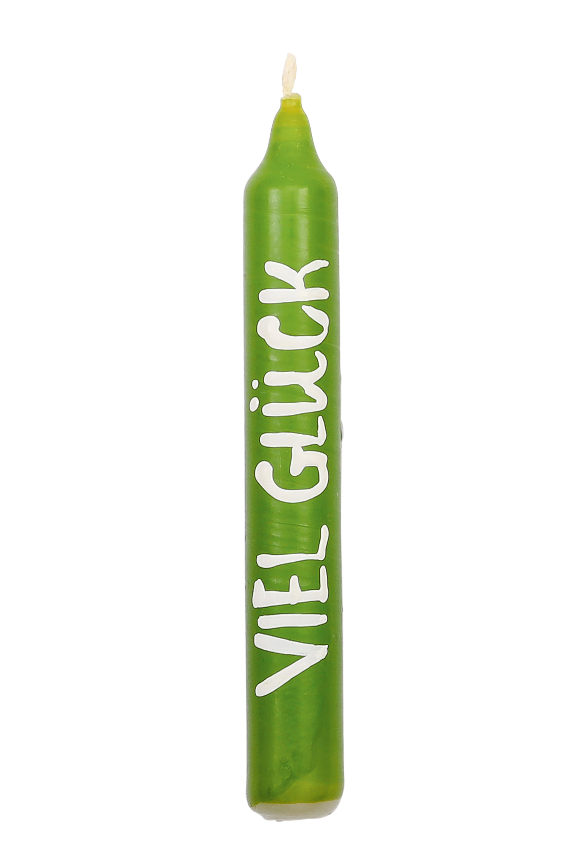Eine Viel Glück Kerze in toller Aufmachung. Die tolle kleine Kerze ist wunderbar fröhlich gestaltet und begeistert mit kunterbunten Motiven.