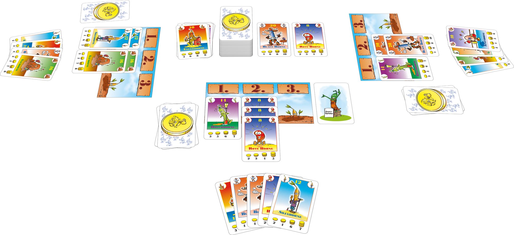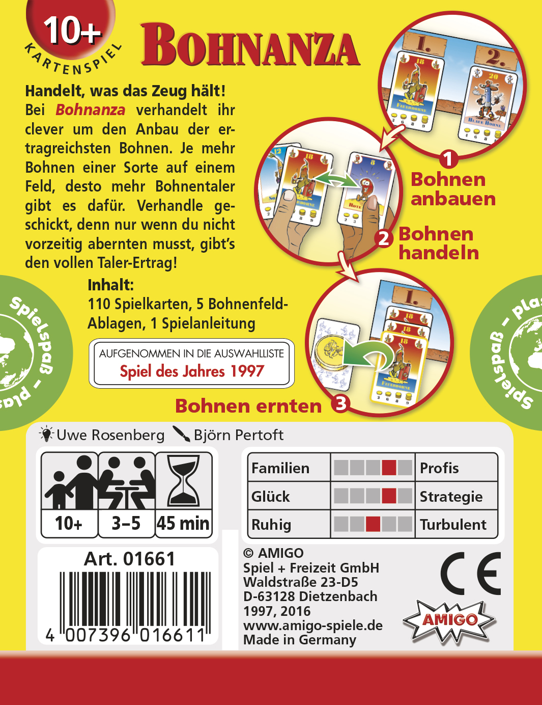 • Inhalt: 110 Spielkarten, 5 Bohnenfeld-Ablagen, 1 Spielanleitung