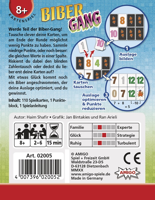 Hier haben wir für euch das kurzweilige Kartenspiel Biber-Gang von Amigo. Leichte Regeln machen es zu einem beliebten Familienspiel.