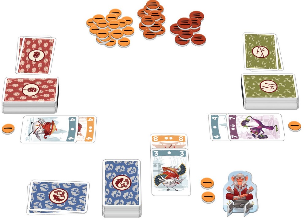 Danach vergleicht ihr eure ausgespielten Karten untereinander: Wer den höchsten Wert einer Farbe gespielt hat, erhält Minuspunkte-Chips. Im ersten Durchgang verteilt ihr Chips mit 1 Minuspunkt, im zweiten Chips mit 2 Minuspunkten und im dritten Chips mit 3 Minuspunkten.