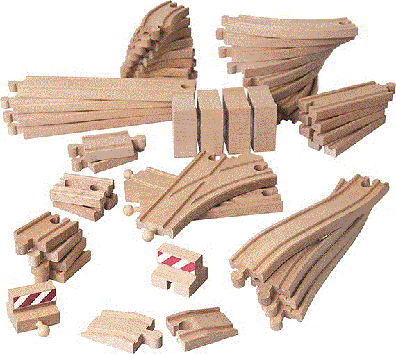 • Inhalt: 8x kurze gebogene Gleise, 8x lange gebogene Gleise, 4x lange gerade Gleise, 4x mittlere gerade Gleise, 4x kurze gerade Gleise, 8x gerade Mini-Gleise, 2x Bogenweiche, 2x Prellbock, 2x Rampe, 4x Brückenpfeiler, 4x Rampengleise(insg. 50 Teile)