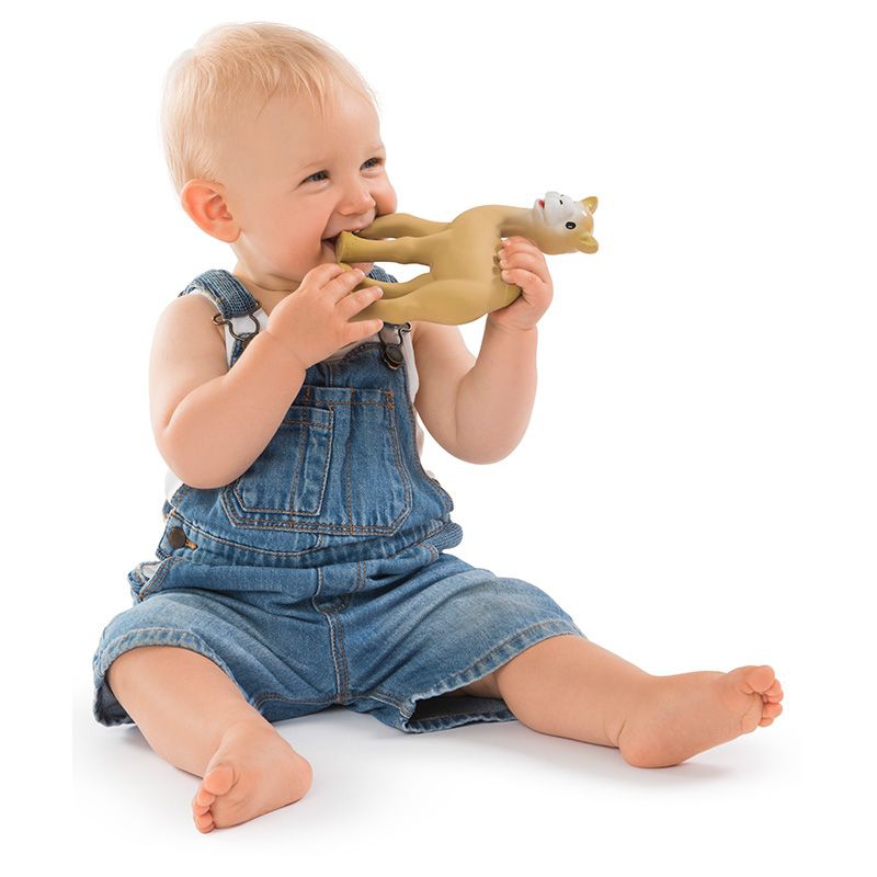 Unbedenklicher Naturkautschuk, bemalt mit Lebensmittelfarbe, die ideale Greifform, eine angenehme Haptik und ein fröhliches Quietschgeräusch sind die Kennzeichen dieser beliebten Babyspielzeuge. An vielen Teilen (Ohren, Beine,...) kann das Baby herumkauen, auch um Zahnungsschmerzen zu lindern.