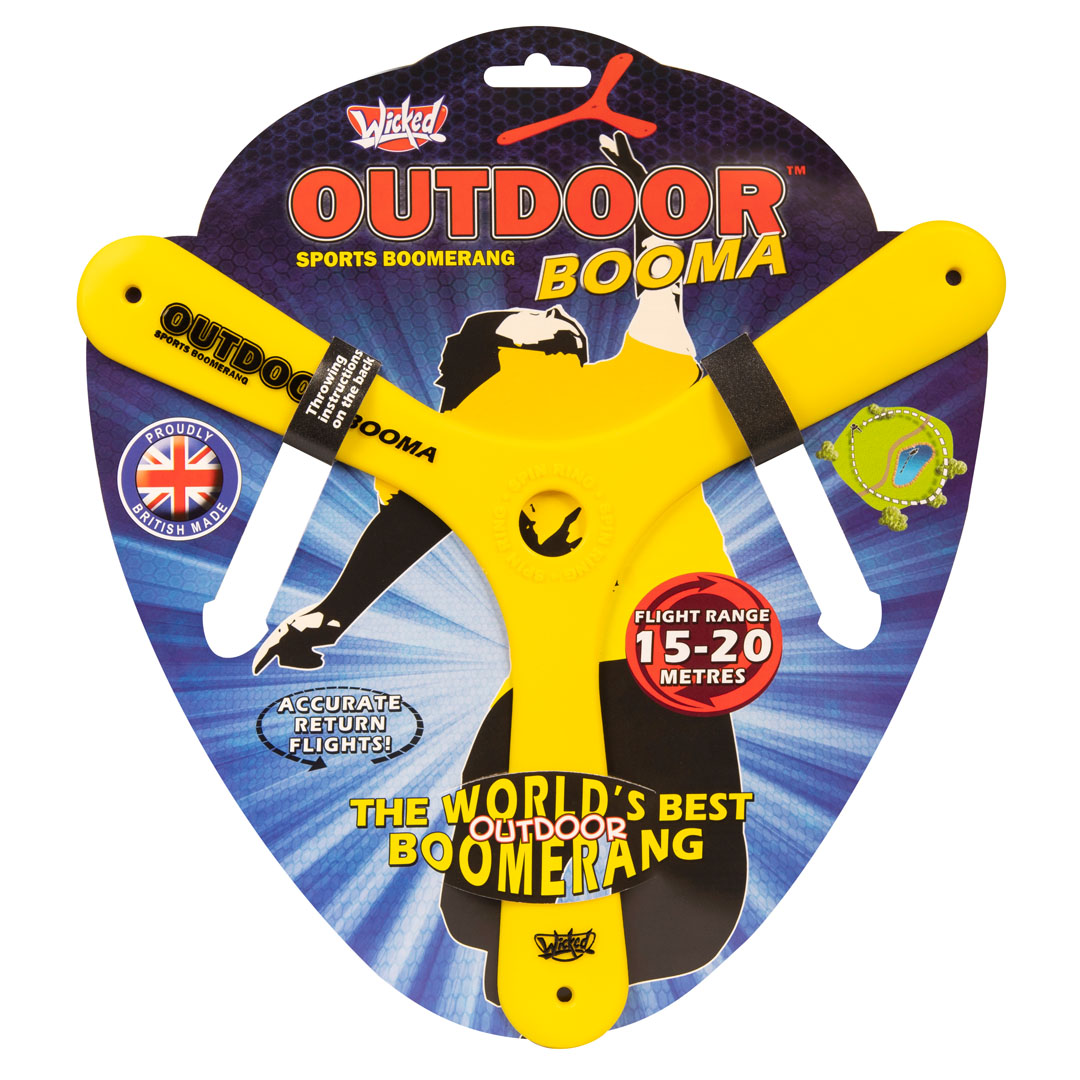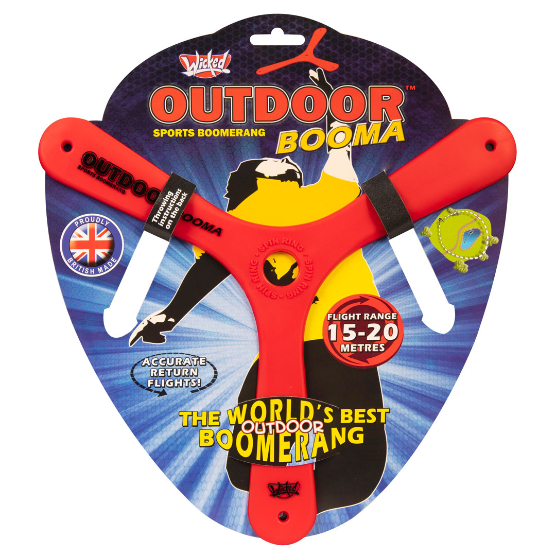 Die meisten Bumerangs der „Wicked Booma-Serie“ verfügen über ein sehr leistungsfähiges „Tri-Blade Design“, das einen stabilen und präzisen Rückflug beim Werfen ermöglicht. Jeder Wicked Booma kommt mit vollständigen Wurfanweisungen auf der Rückseite der Verpackung und ist einfach zu werfen und zu fangen.