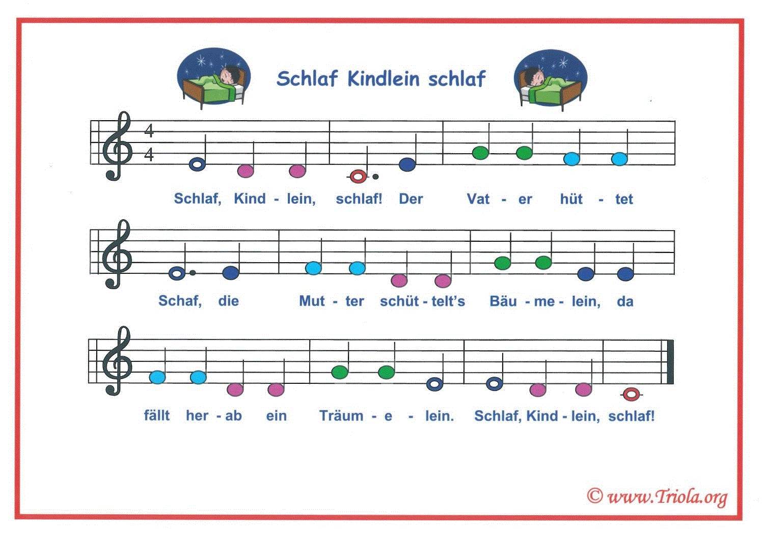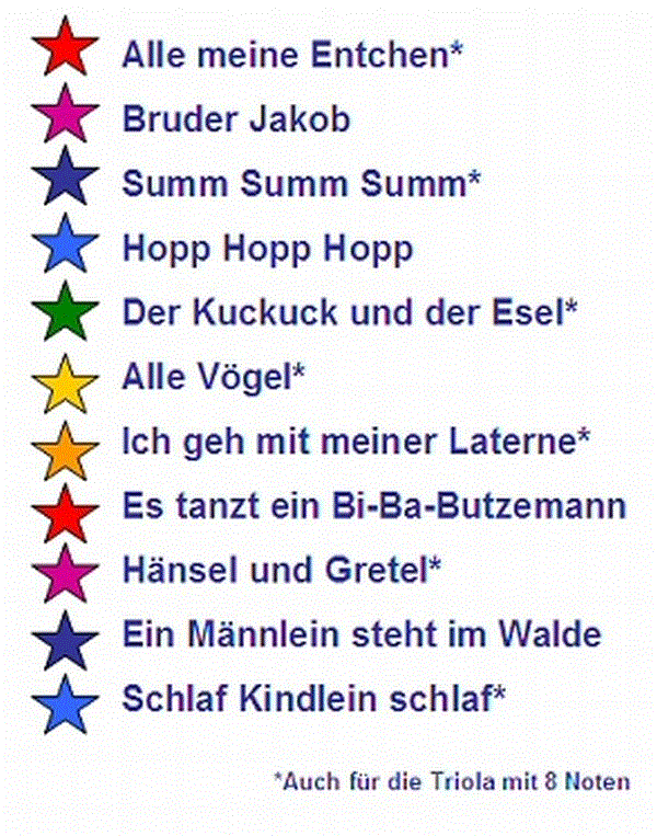 Das passende Liederbuch, um mit der Triola zu spielen. 11 einfache und bekannte Kinderlieder sind hier in farbigen Noten dargestellt.