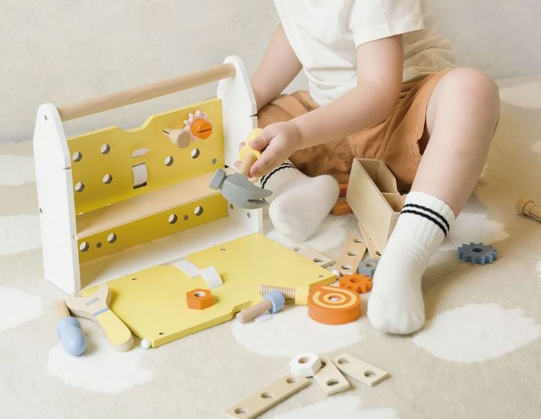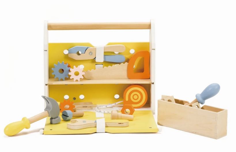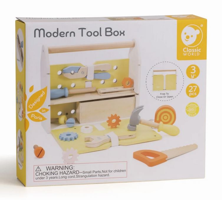 Hämmern und Schrauben wie die Großen! Ein cooler Werkzeugkasten aus Holzteilen von CLASSIC WORLD. Ein tolles Rollenspiel für kleine Handwerker*innen ab 3 Jahren. Spielerisch werden die motorischen Fähigkeiten des Kindes beim Schrauben und Hämmern gefördert. Der Werkzeugkasten aus Holz lässt sich einfach auf- und zuklappen und dient teilweise als Werkstück.