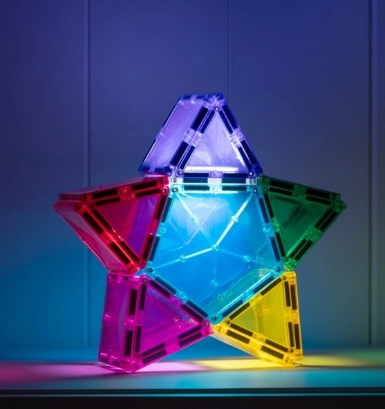 Kinder lernen spielerisch etwas über Farbmischung, Lichtbrechung, Schatten und optische Täuschungen lernen, während sie mit Richtung und Intensität des Lichts experimentieren. Der Baustein lässt sich auf einer oder beiden Seiten beleuchten und bietet drei Helligkeitsstufen, um die Licht-Erkundung und das Spiel mit Magnetbausteinen auf ein neues Level zu heben!
