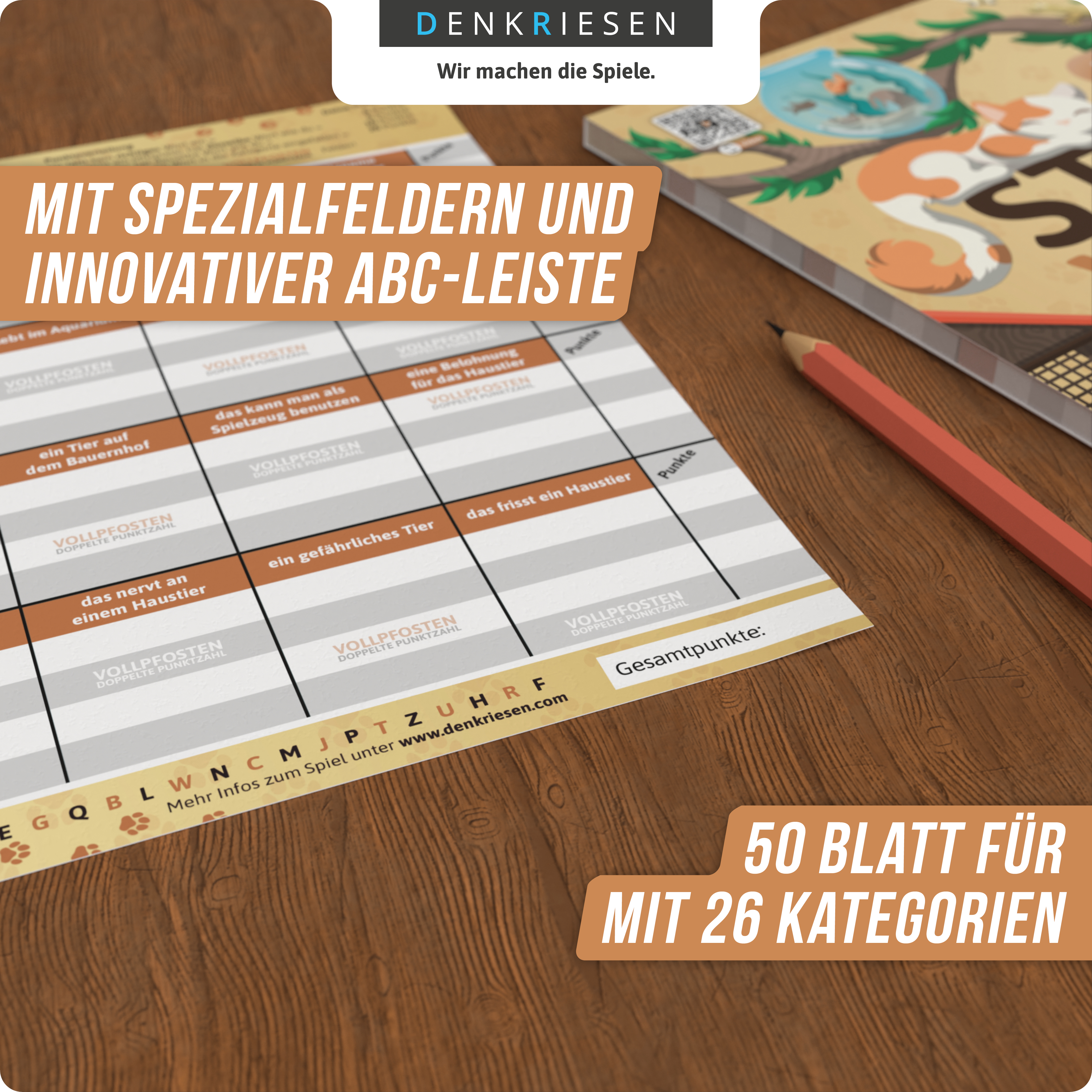 Entsprechend der Thematik gibt es auf dem Spielblock Kategorien zu füllen wie "das nervt an deinem Haustier" oder "lebt im Aquarium". Ansonsten läuft das Spiel nach dem klassischen Prinzip von "Stadt-Land-Fluss" mit ein paar interessanten Zusatzregeln.