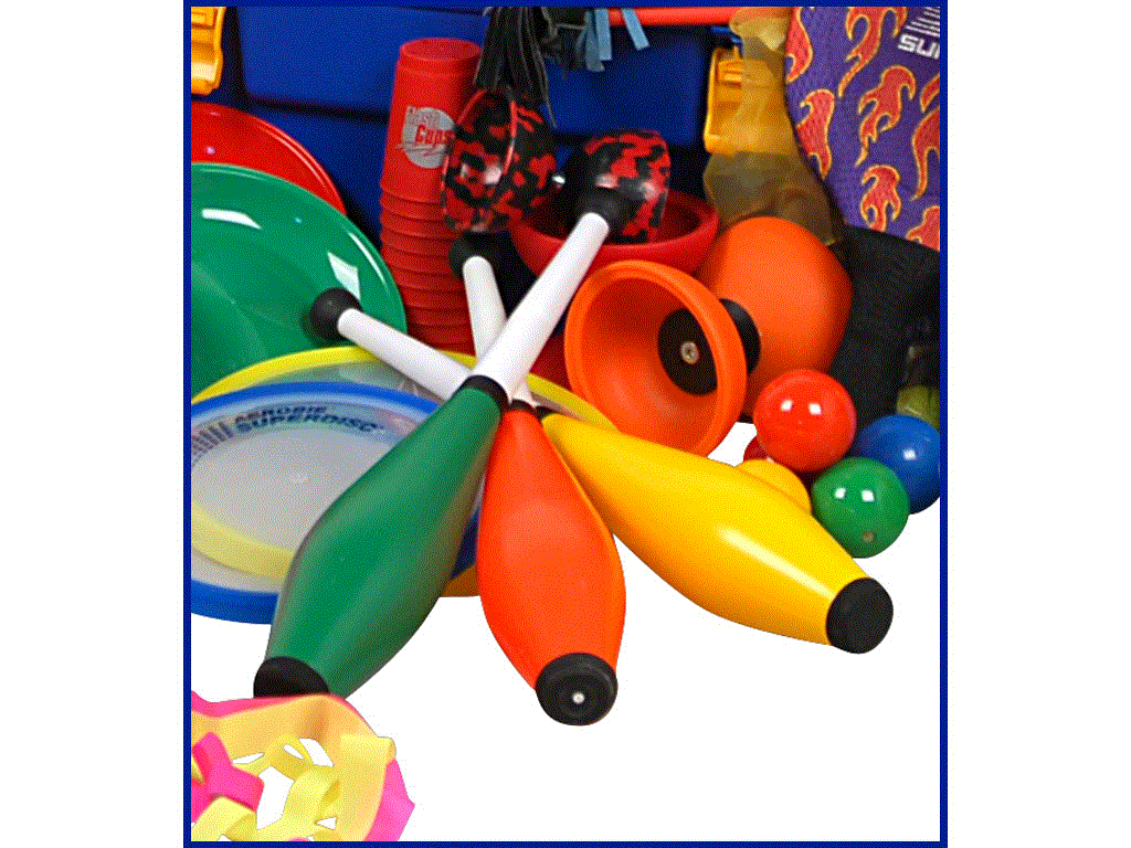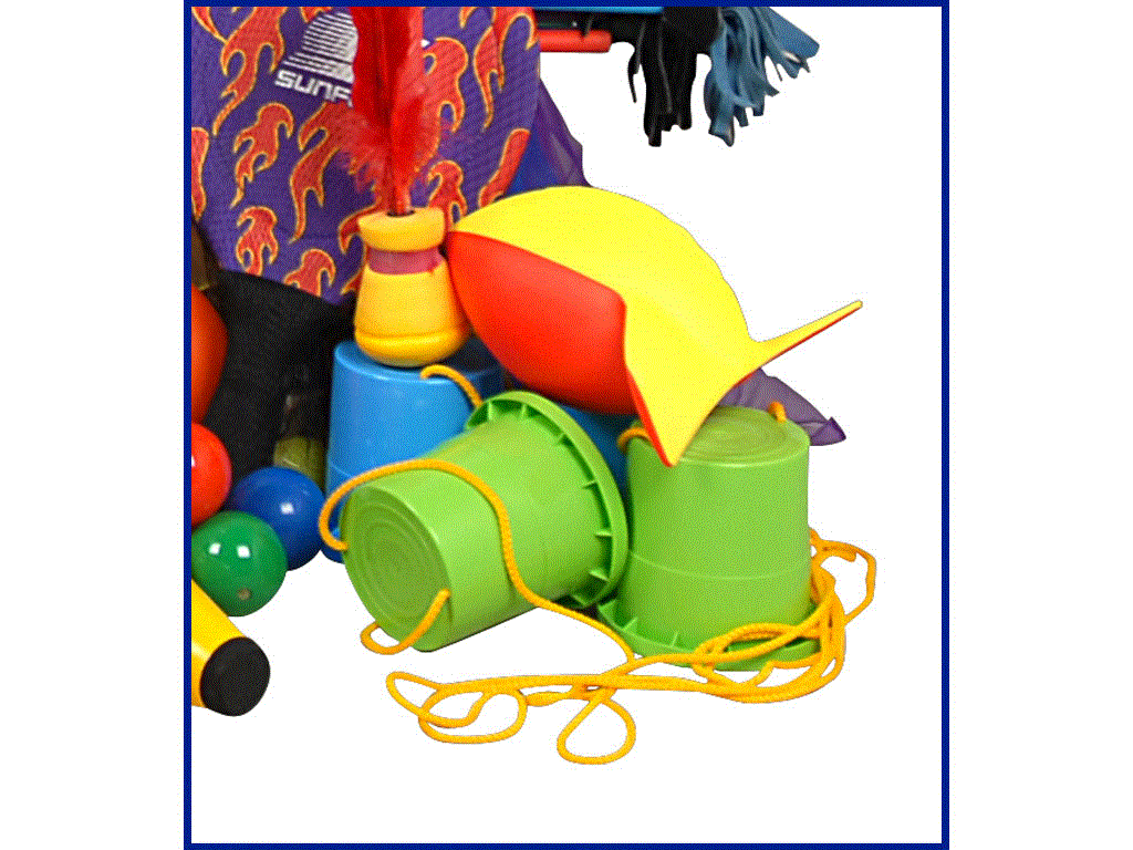 Die Jonglier- und Spielekiste bietet eine Vielzahl von Möglichkeiten, von lustigen Mannschafts-Wettbewerben, über Staffelspiele bis gemeinsam Jonglage üben, lasst eurer Phantasie freien Lauf. Am besten draußen oder in größeren Veranstaltungsräumen zu nutzen.