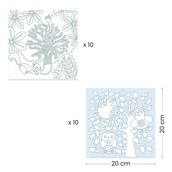 • Inhalt: 1 Box mit 10 Ausmalbildern und 10 Spielen zum Herauslösen.