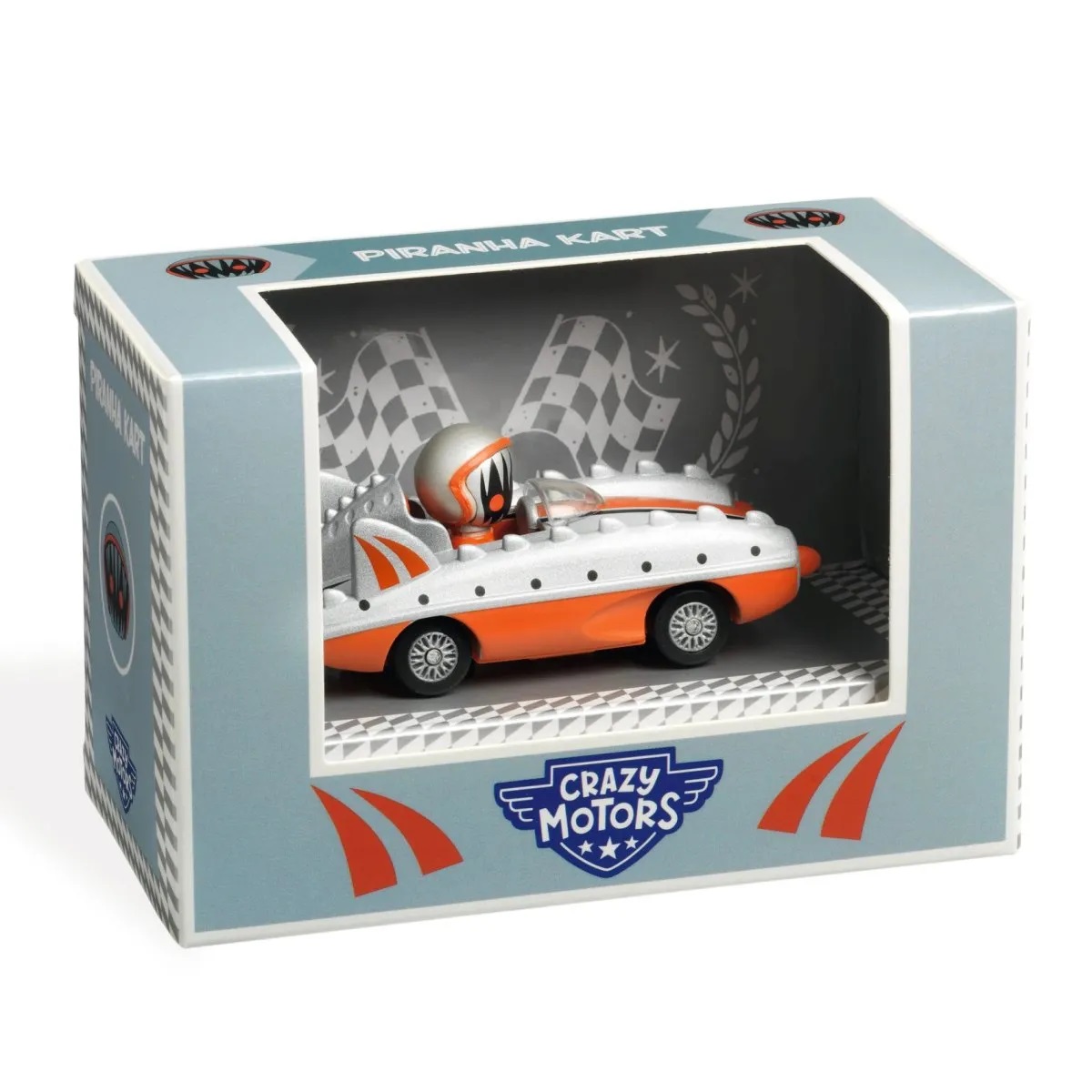 Der heiße orange-silbergraue Renner ist Teil der Spielzeugauto-Serie Crazy Motors von Djeco.