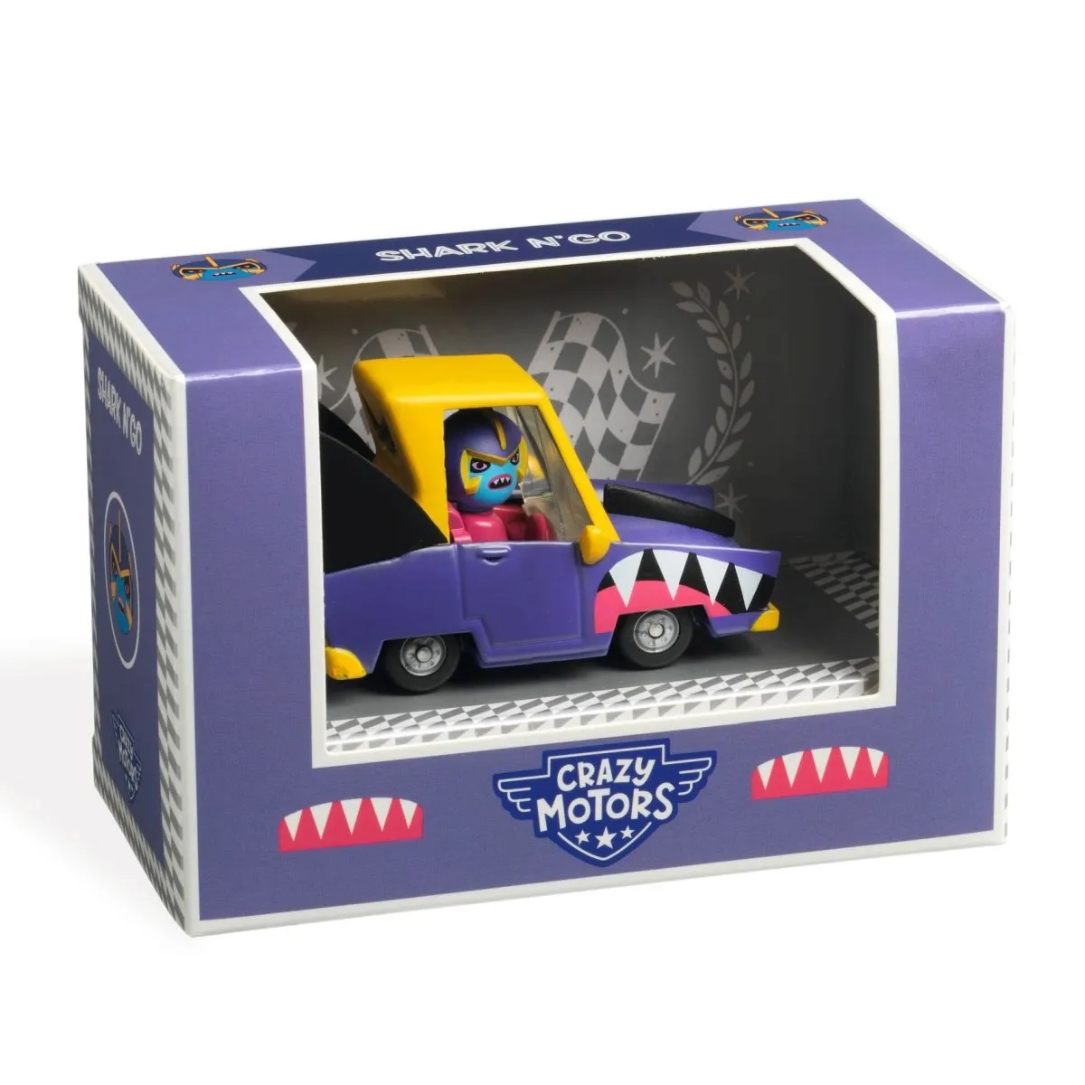 Dieses verrückte Superheldenfahrzeug mit Haioptik ist Teil der Spielzeugauto-Serie Crazy Motors von Djeco.