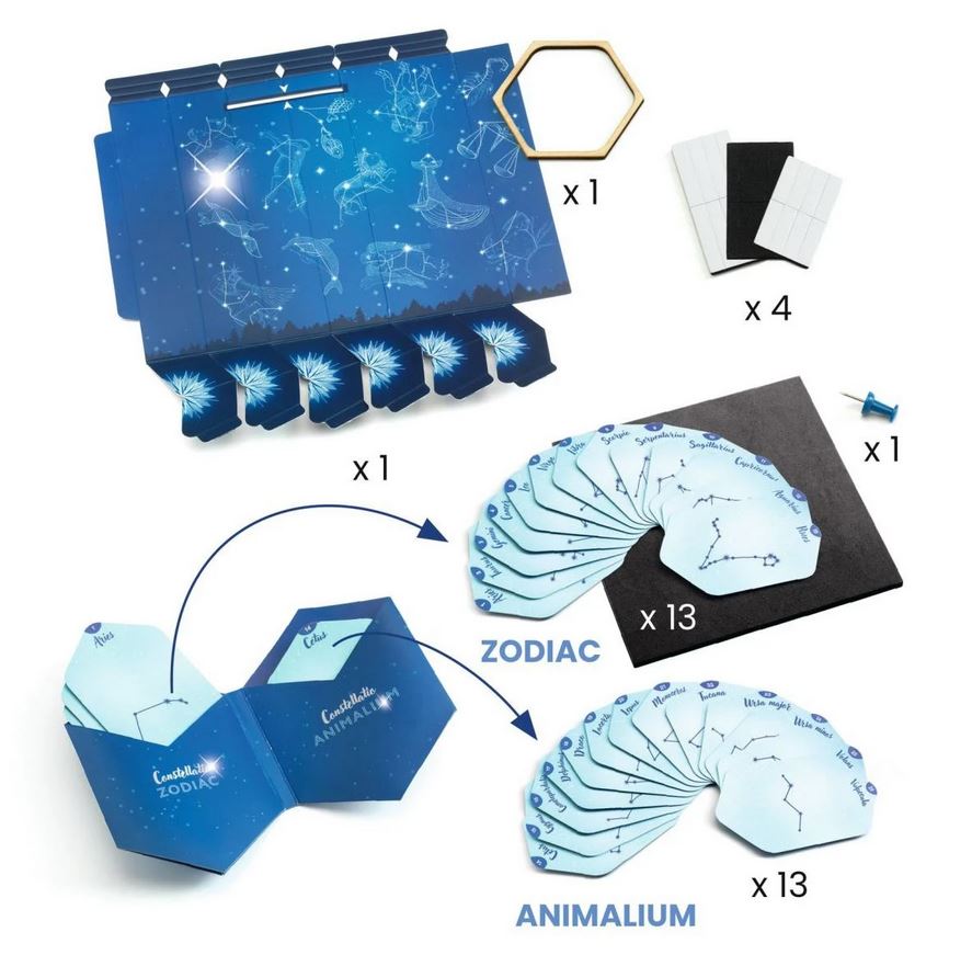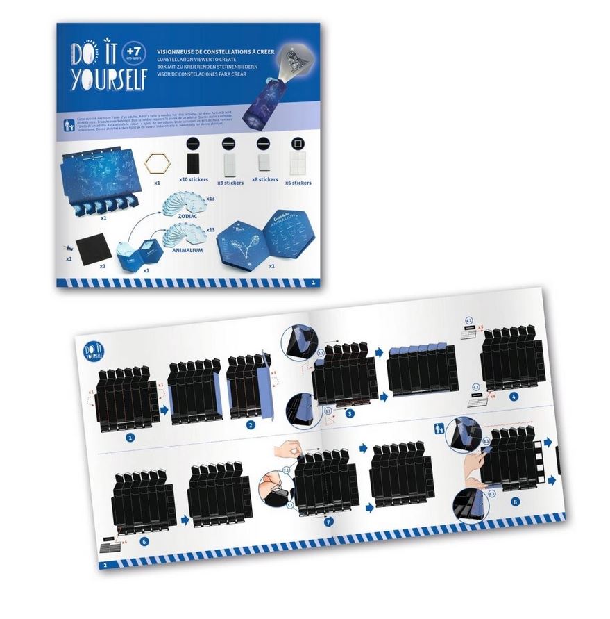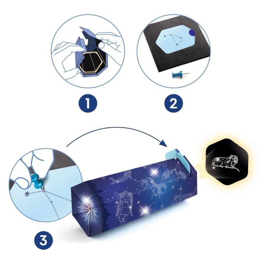 Sternbilder sind spannend und magisch! Mit dem DIY-Set Sternbilder von Djeco gehst du auf die Reise zu den Sternen und den daraus entstehenden Sternzeichen und Tierbilder: Auf 26 kleinen Papp-Scheiben ist jeweils 1 Sternbild aufgedruckt, mit einer Nadel werden die Sterne als Löcher durchgebohrt. Dann wird der Fernrohr-artige Betrachter zusammengebaut und die Sternbild-Scheiben eingesteckt: Wow! Beim Duchschauen erscheint das Sternbild! Und noch besser: Jetzt hinaus in die Nacht, den Himmel absuchen ... wo ist das Sternbild? Und wo ist deins? So macht Lernen und Träumen richtig Spaß. Und bringt viel endlose Weitsicht ...