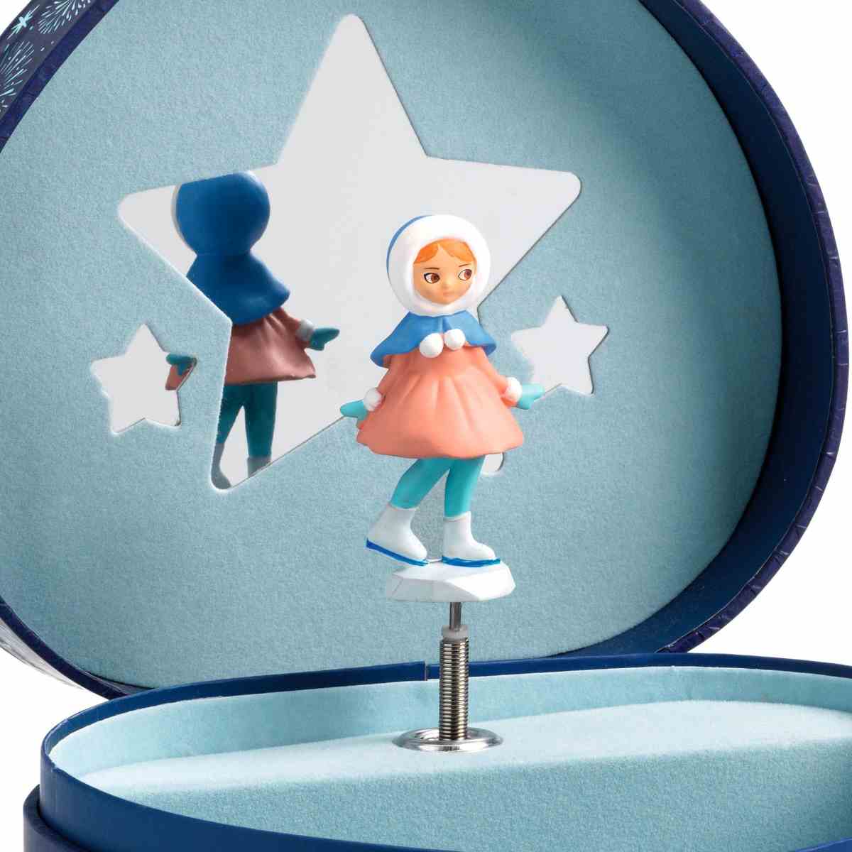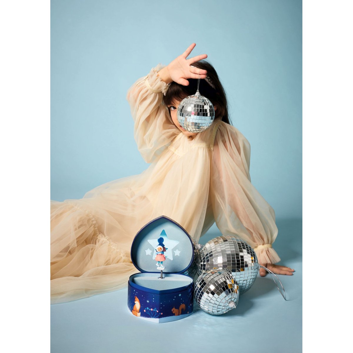 Das herzförmige Schmuckkästchen mit Musik von Djeco hat ein winterliches Thema.