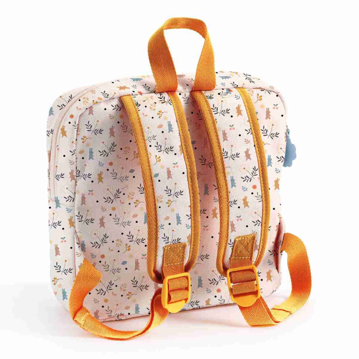 Ein wunderschöner und cleverer Rucksack 2-in-1 von Djeco: es ist ein Rucksack UND ein Tragesitz für die Babypuppe dem Rücken.