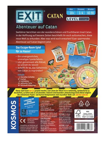 EXIT® - Das Spiel: Abenteuer auf Catan von Kosmos: Das ist spannend: Die EXIT-Rätsel-Crew reist nach CATAN, die Insel des weltberühmten Brettspielklassikers CATAN! Wird die CATAN-Mission gelingen? Dort Rätsel zu lösen, sich anzusiedeln, ein neues Leben aufzubauen?
