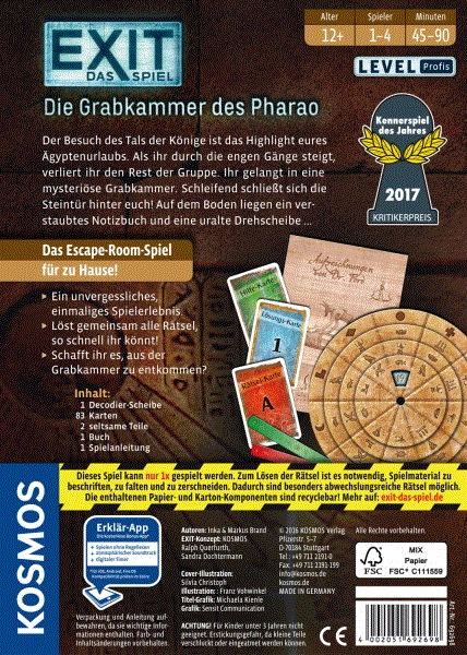 | Spielgattung: | Erwachsenenspiel, Escape Games, Kennerspiel |