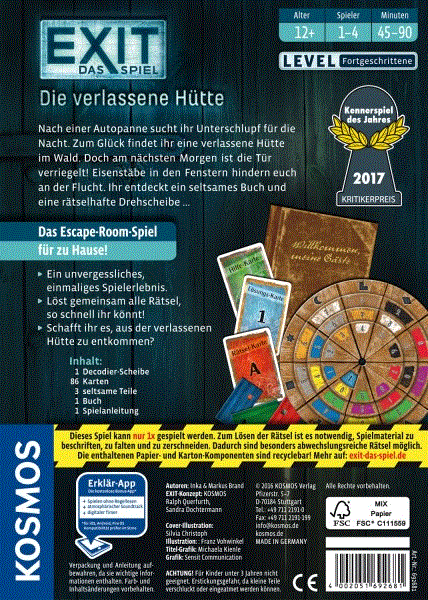 | Spielgattung: | Erwachsenenspiel, Escape Games, Kennerspiel |