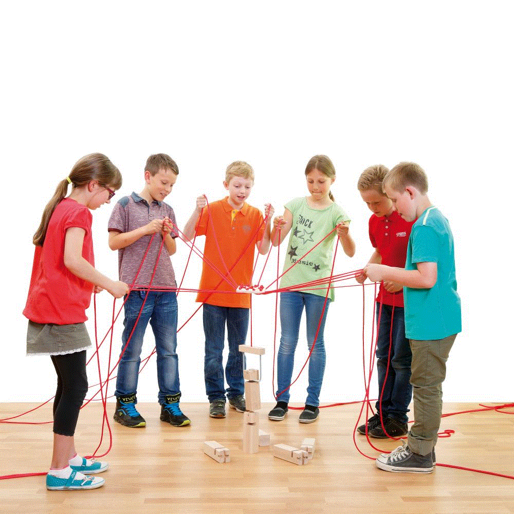 • Inhalt: 6 Hartholzklötze,1 Bügel mit Seilaufnahme,12 Schnüre à 2x2m,1 Aufbewahrungsbeutel,1 Spiel- und Montageanleitung