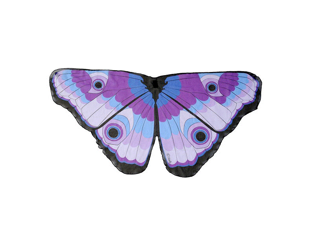 Farbenfroh bedruckte Stoffflügel. Die Spannweite beträgt ca. 110cm, mit elastischen Schulter- und Fingerschlaufen, bereit zum Tanzen, Springen und Flügelspreizen.