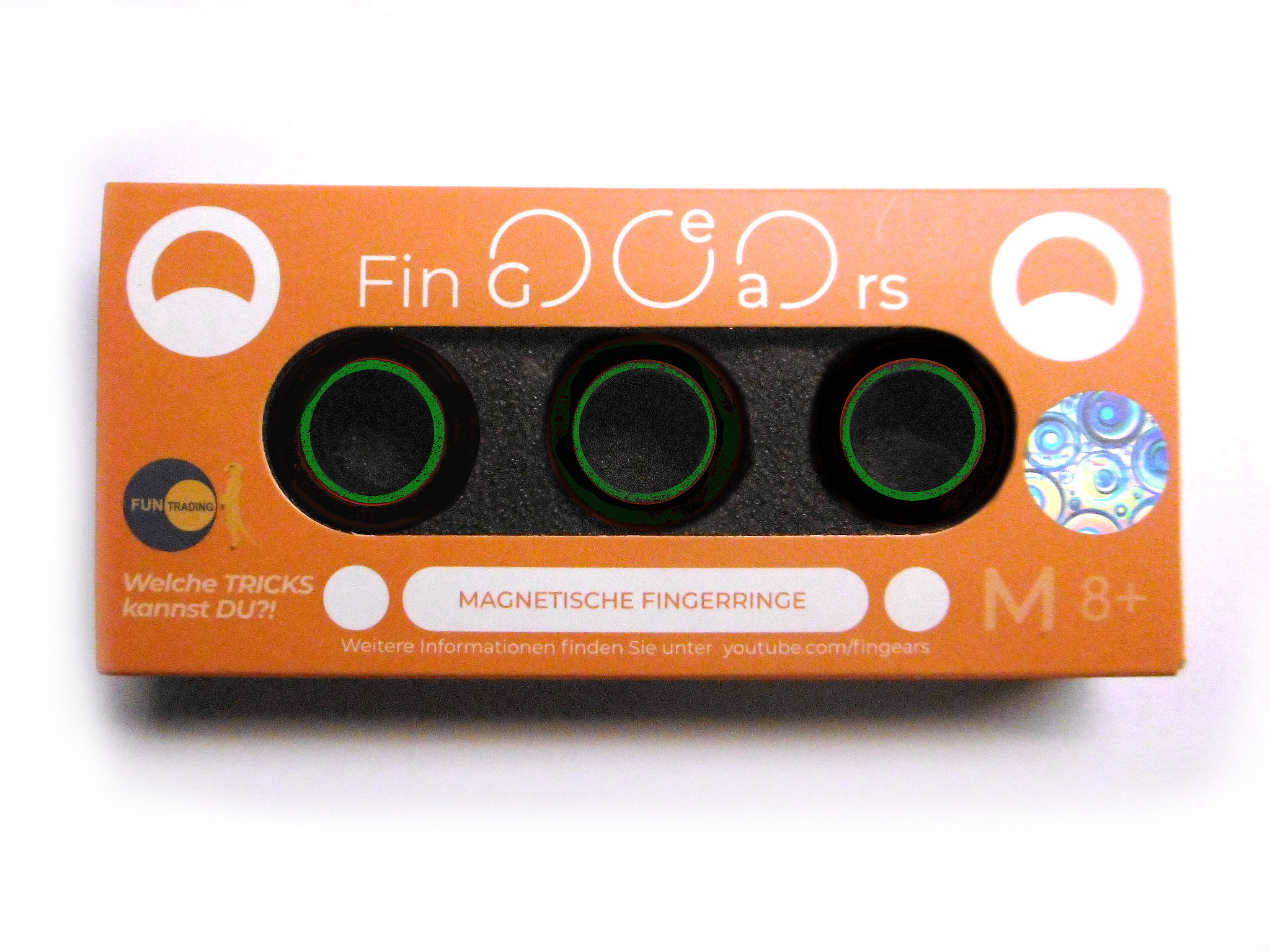 Die legendären Finger Spinner sind noch immer in aller Munde – und da kommt mit den Fingears - hier in Größe M - schon der nächste Trend angerollt. Mit drei einzelnen magnetischen Ringen lassen sich allerlei Freestyle-Tricks umsetzen. Wie der Name verspricht, passen die Ringe dabei ideal um die die Finger und bieten eine außergewöhnliche Beschäftigung für verspielte Hände. Ein süchtig machendes kleines Spielzeug!