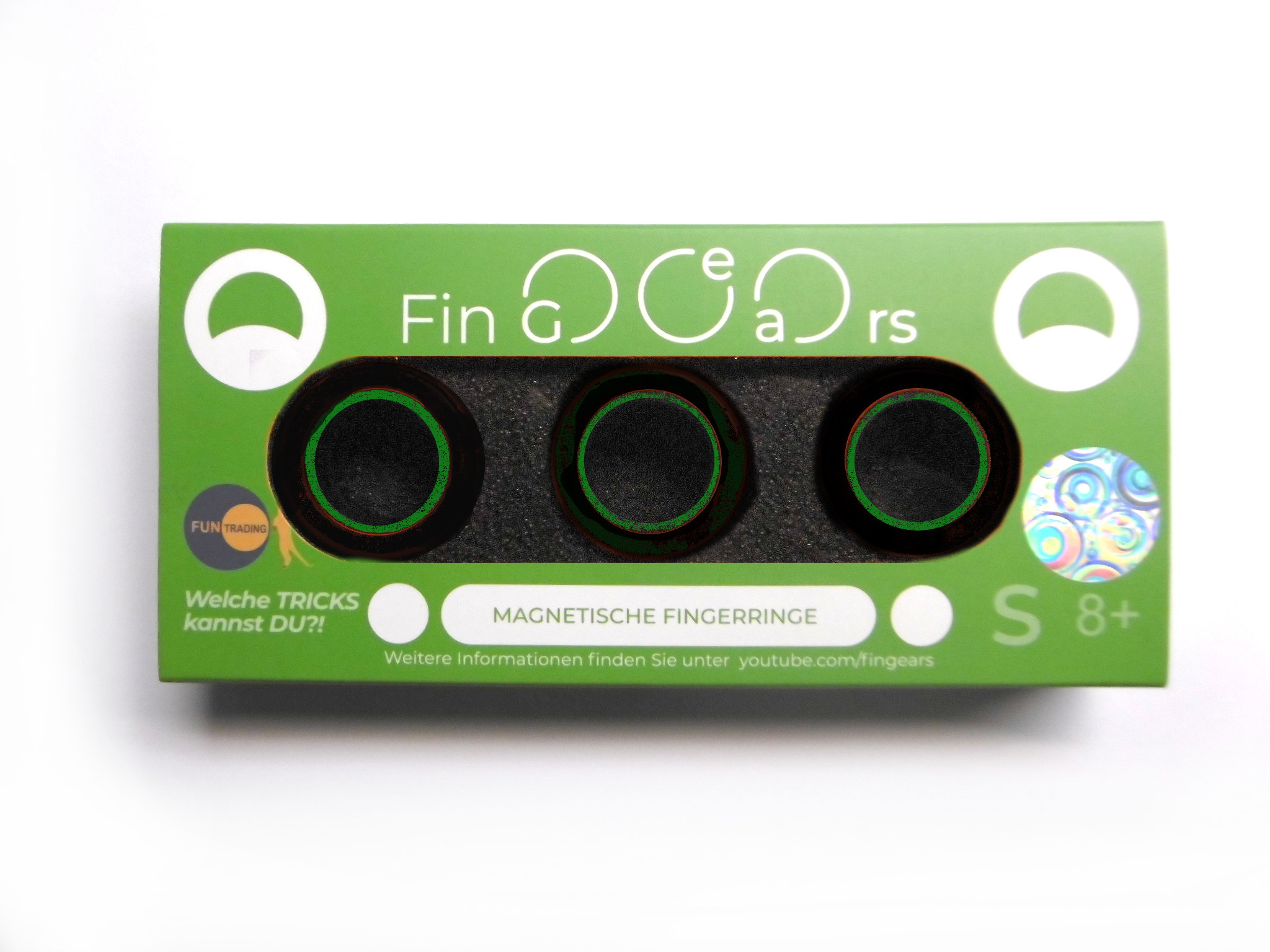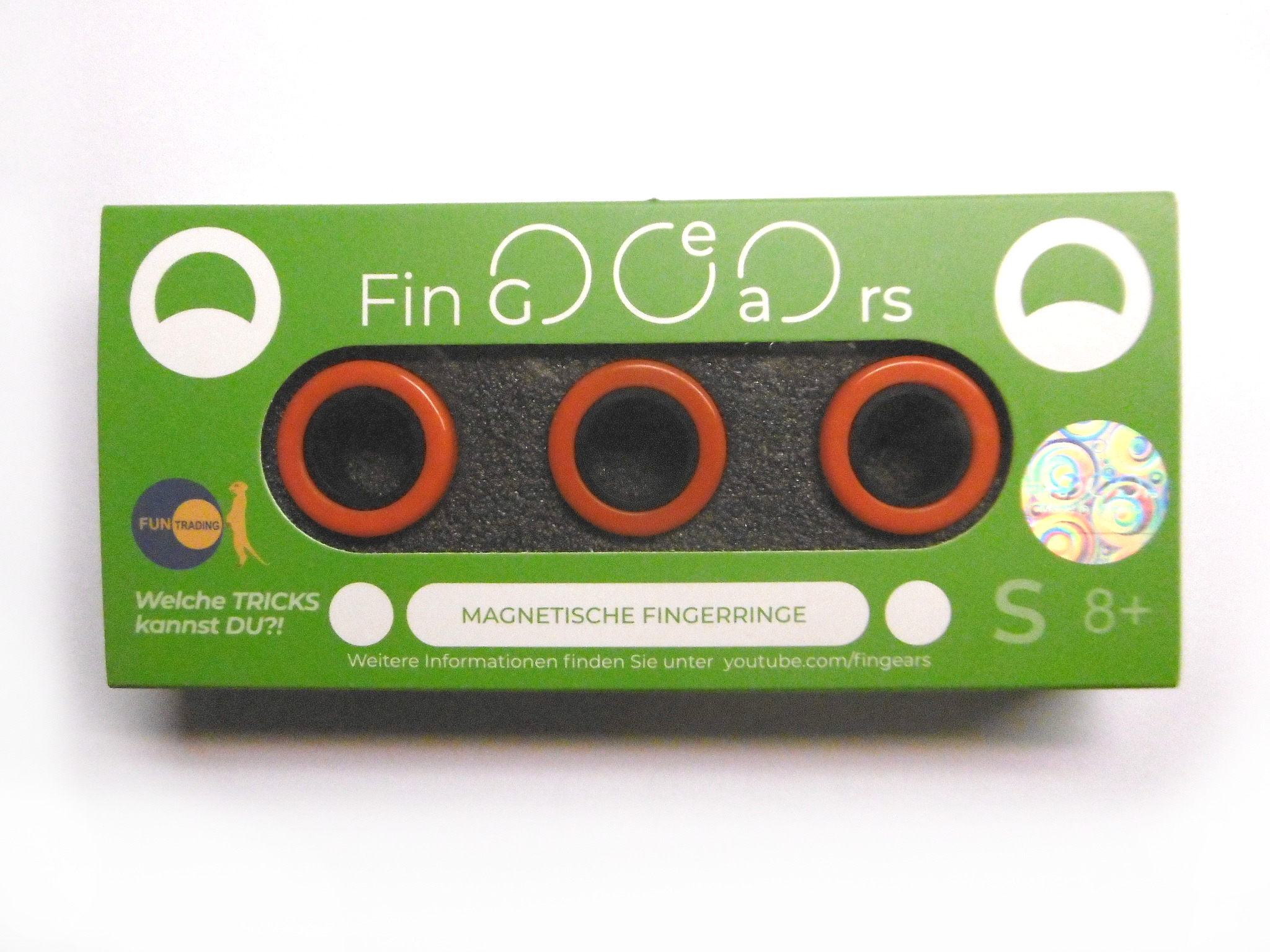 Die legendären Finger Spinner sind noch immer in aller Munde – und da kommt mit den Fingears (hier in Größe S) schon der nächste Trend angerollt. Mit drei einzelnen magnetischen Ringen lassen sich allerlei Freestyle-Tricks umsetzen. Wie der Name verspricht, passen die Ringe dabei ideal um die die Finger und bieten eine außergewöhnliche Beschäftigung für verspielte Hände. Ein süchtig machendes kleines Spielzeug!