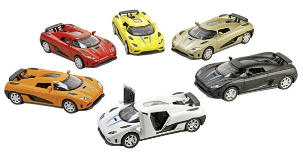 Es befindet sich eines der abgebildeten Modellautos im Lieferumfang. Farblich sortiert.