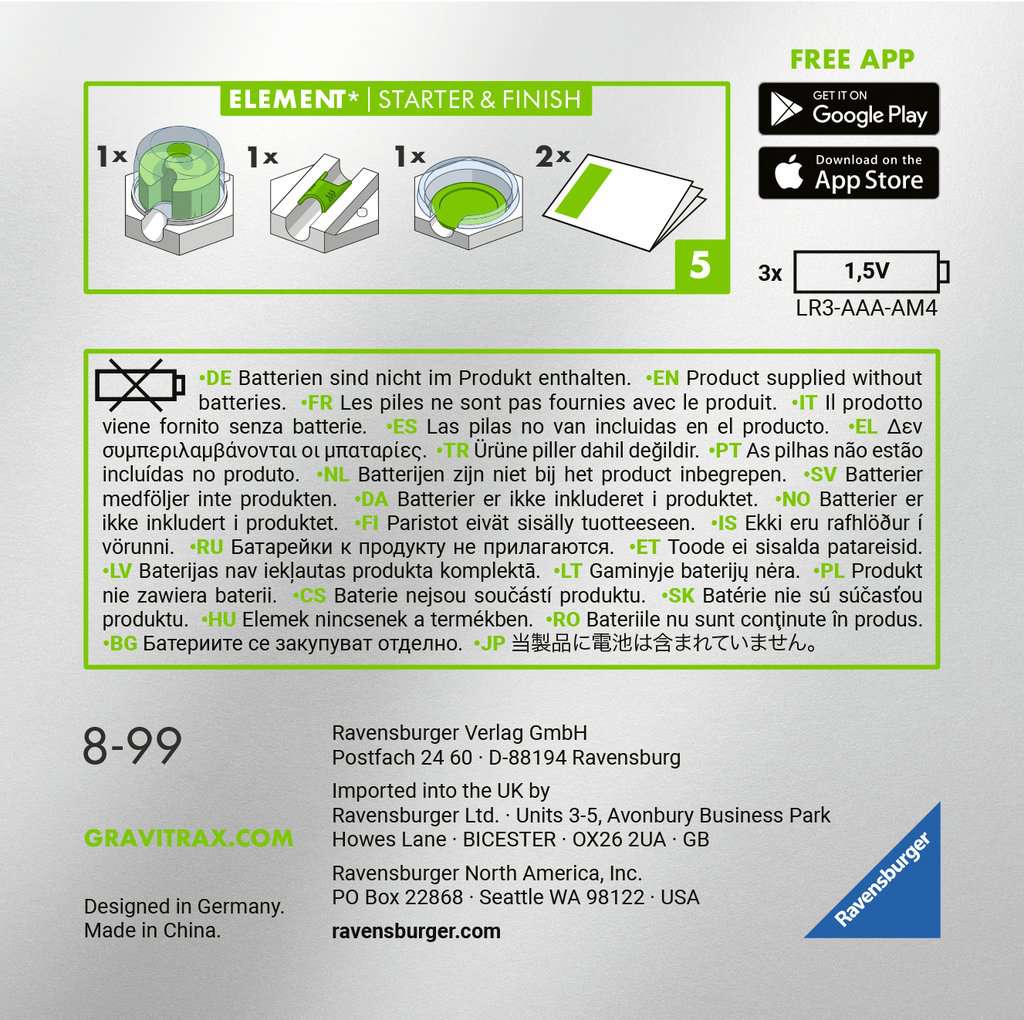 Die elektronischen GraviTrax POWER Elemente Starter & Finish sind ein Erweiterungsset für die GraviTrax Bahn von Ravensburger.