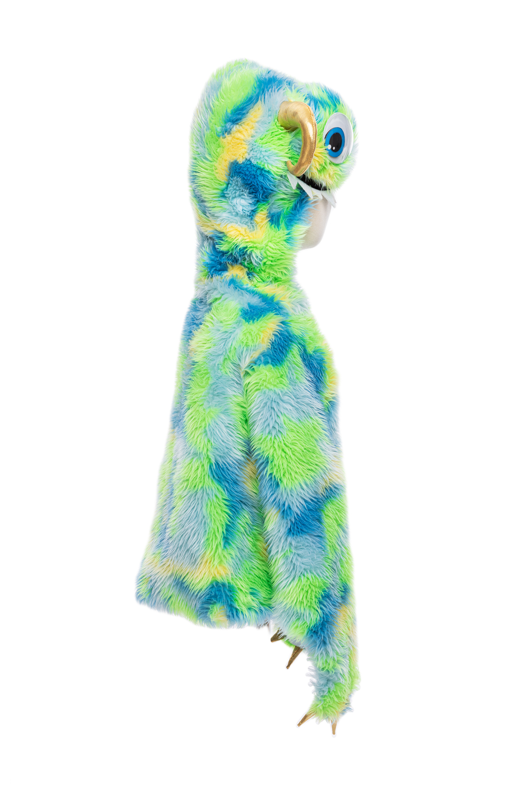 Witziger Monster Umhang von Great Pretenders mit Kapuzenkopf inclusive Wackelaugen und goldenen Stoffhörnchen. An den vorderen Ecken ist der Umhang zu Monsterpfoten ausgearbeitet. Knuddelig, zottelig und ein bißchen liebenswert verpeilt.Das Kinderkostüm ist ganz schnell an- und ausgezogen. Super auch bei kaltem Wetter, da man darunter beliebige, auch warme Klaidung tragen kann.