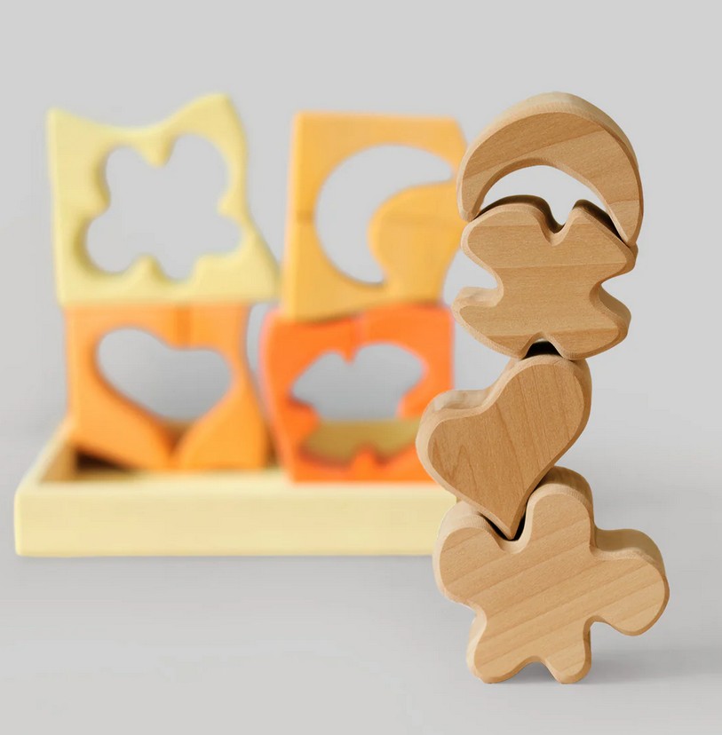 ein Legepuzzle mit vier Symbolen - aber auch ein Stapelspiel mit verschiedenen Holzformen - aber auch eine kleine Fantasiewelt für Püppchen - oder oder oder!