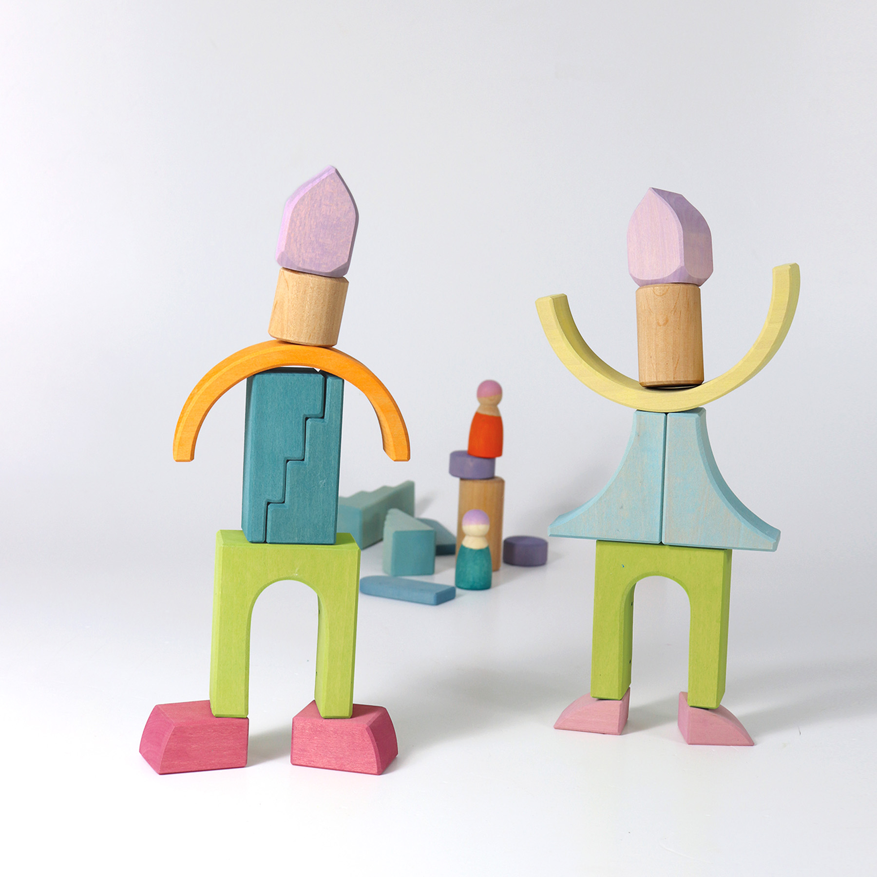 Die schönen Grimm´s Bauwelten regen intensiv zum freien Spiel an - hier die Bauwelt Wolkenspiel mit harmonischen Pastellltönen.