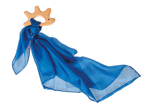 An den Greifling Igel kann man wunderbar auch ein Tuch knoten und ihn so für etwas ältere Babys oder Kinder in ein neues Spielzeug verwandeln.