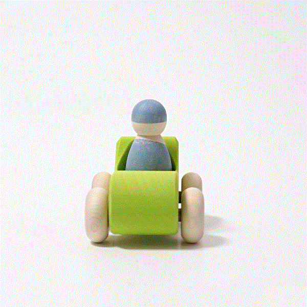 Bitte einsteigen für eine kleine Spritztour im Cabrio. In den grünen Flitzer ist Platz für eine kleine Holzfigur und schon kann es losgehen. Ob drin oder draußen, das Auto ist ein super Spielgefährte. Und wenn die Straßen doch etwas dreckiger waren als gedacht, kann man das Cabrio einfach mit einem feuchten Lappen reinigen.