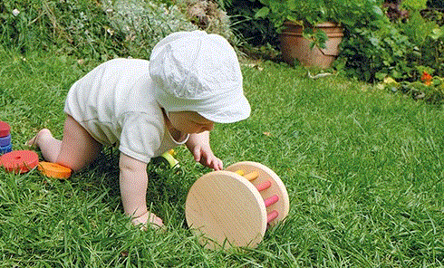 den Grimm´s Holzspielzeugen das Motiv des Regenbogens auf. Die Produkte