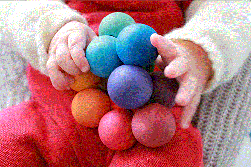den Grimm´s Holzspielzeugen das Motiv des Regenbogens auf. Die Produkte