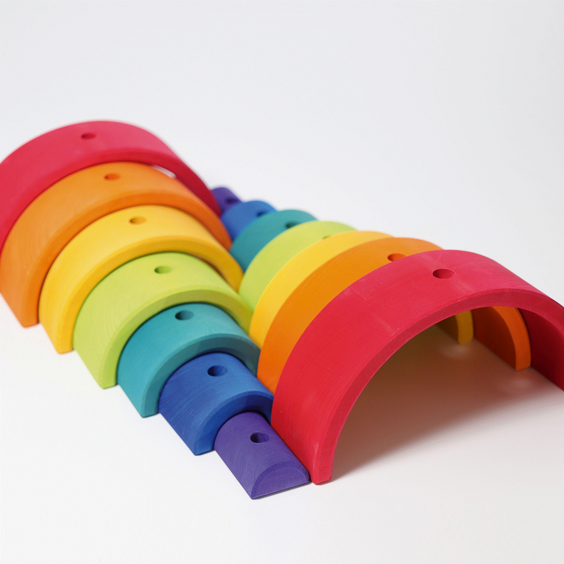 den Grimm´s Holzspielzeugen das Motiv des Regenbogens auf. Die Produkte