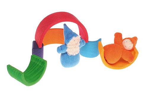 den Grimm´s Holzspielzeugen das Motiv des Regenbogens auf. Die Produkte