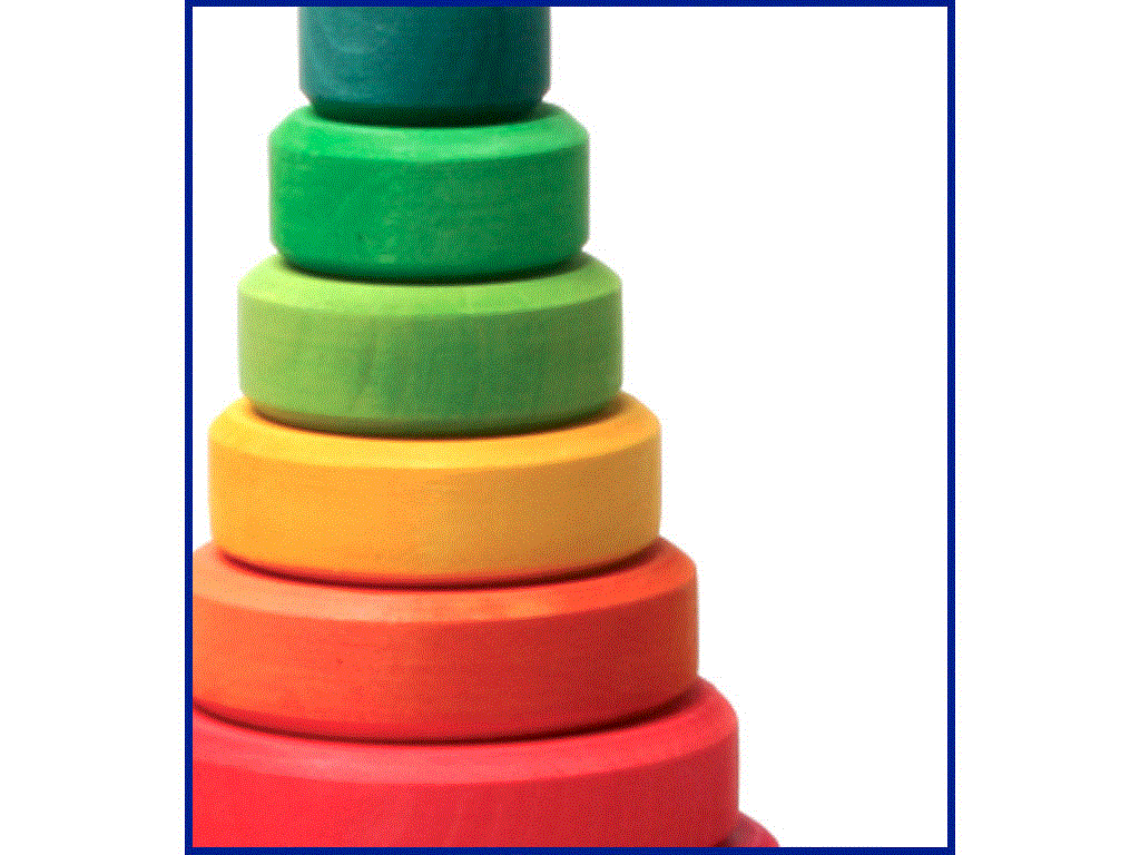 Ein gut gearbeitetes Steckspiel aus Erlenholz in harmonischen giftfreien Farben - und in Deutschland produziert. Für Kinder von ca. 1 Jahr, die Motorik fördernd, ebenso wie die Unterscheidung von Größen und Farben.