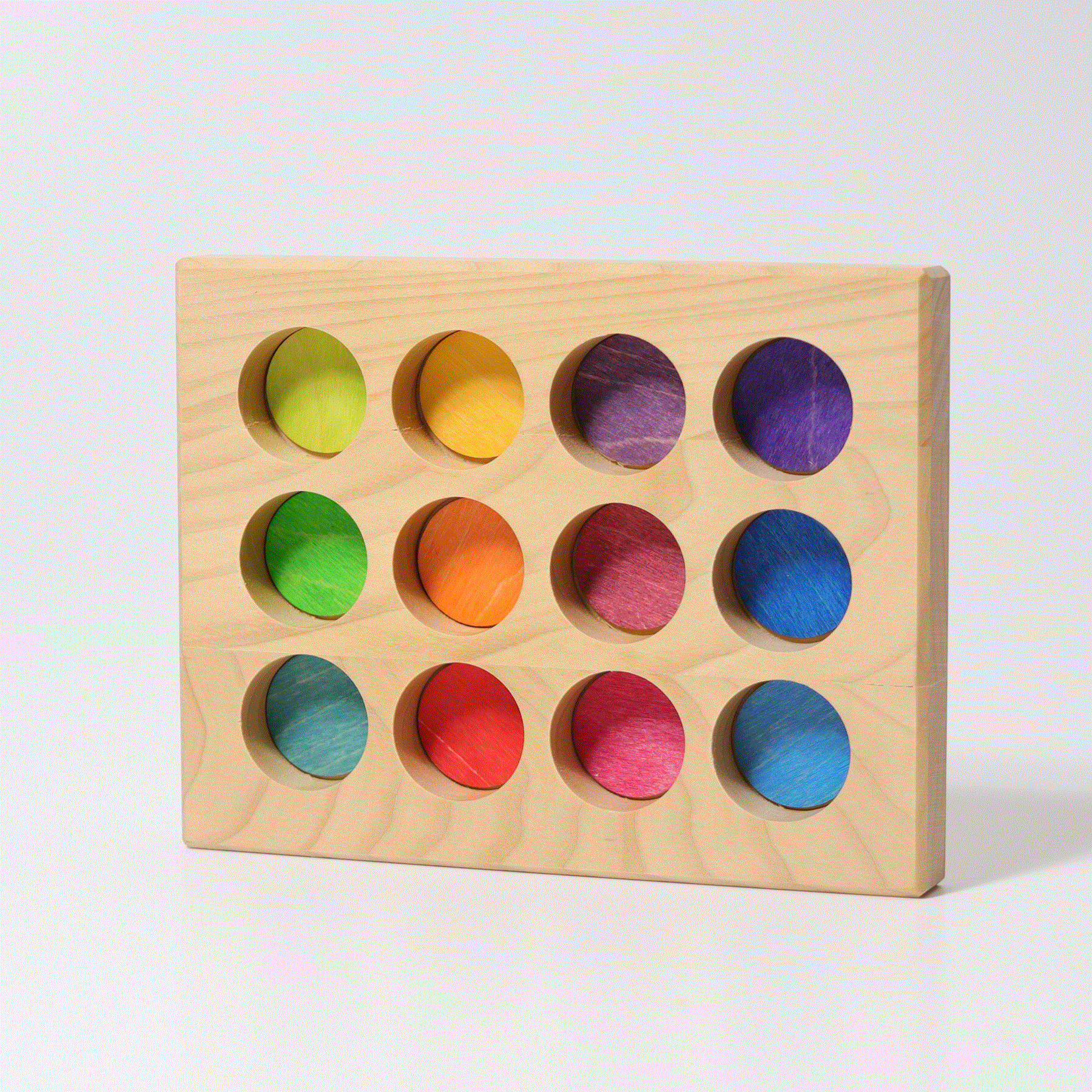 Das Sortierbrettchen ist eine super Ergänzung zu den großen und kleinen Massivholzkugeln oder den Regenbogenfreunden. So können diese nicht nur gut aufbewahrt werden, das Brettchen kann vor allem als Steckspiel genutzt werden. So werden die Motorik und die Auge-Hand-Koordination geschult!
