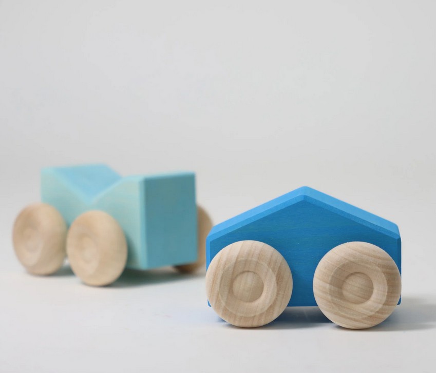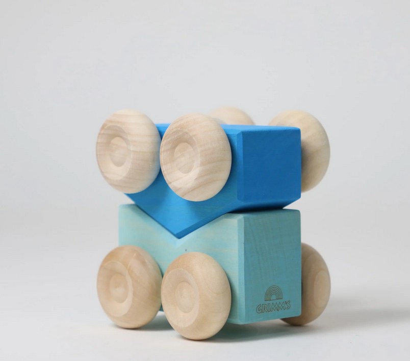 Die Stapel-Autos aus Holz von Grimm´s verbinden zwei große Themen des Spielens: Sie lassen sich aufeinander stapeln und sie können rollen!