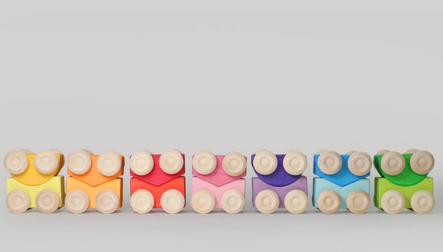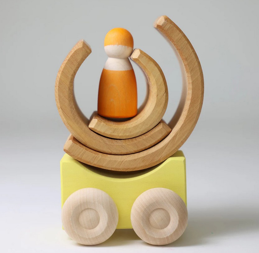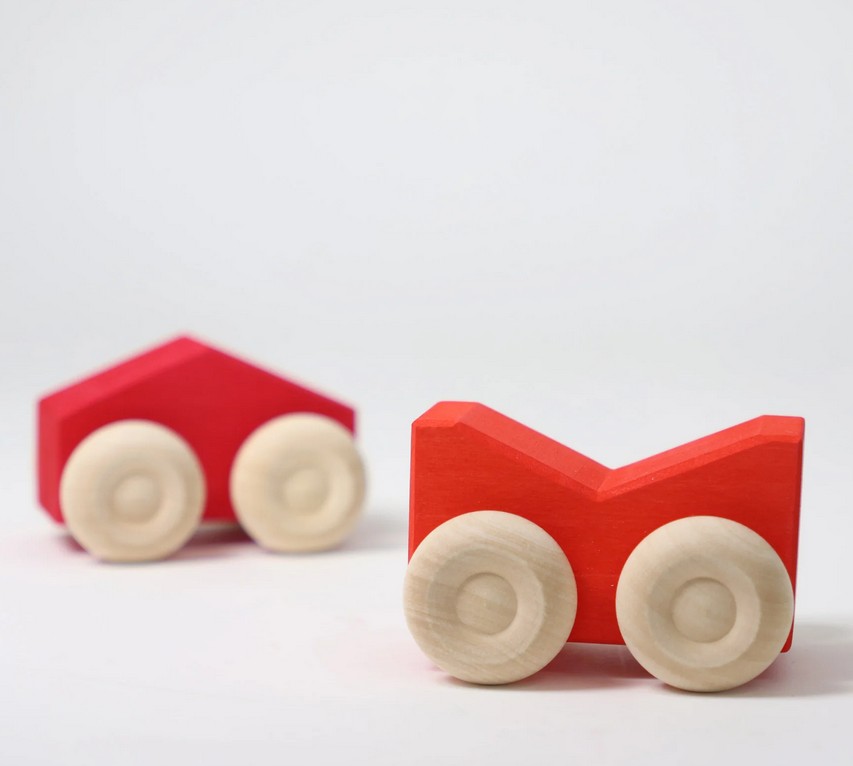 Die Stapel-Autos aus Holz von Grimm´s verbinden zwei große Themen des Spielens: Sie lassen sich aufeinander stapeln und sie können rollen!
