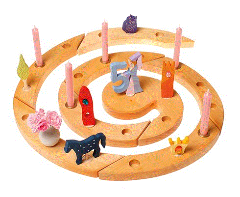 Eine Krone für das Geburtstagskind! Die Firma Grimm´s stellt ausgesprochen hübsche Steckfiguren für die Geburtstagsringe her. Diese kleine goldgelbe Krone hat sogar einen funkelnden Stein.