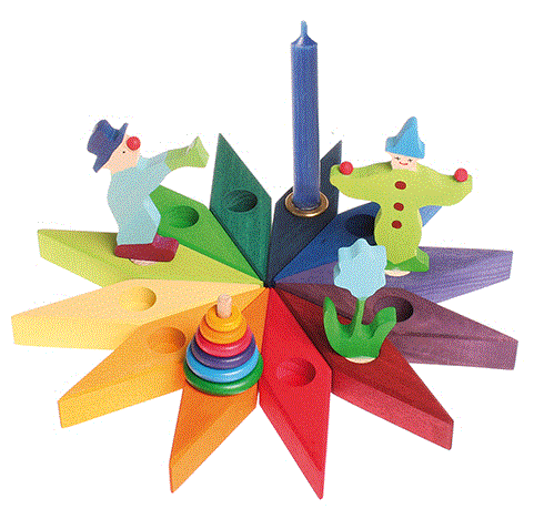 den Grimm´s Holzspielzeugen das Motiv des Regenbogens auf. Die Produkte