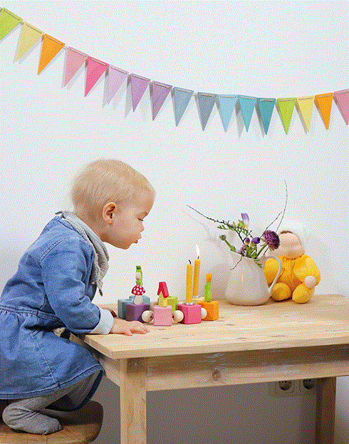 den Grimm´s Holzspielzeugen das Motiv des Regenbogens auf. Die Produkte