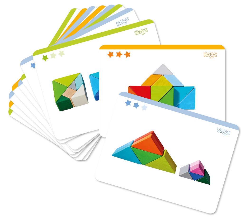 • 10 doppelseitige Vorlagekarten, 21 Holzklötze