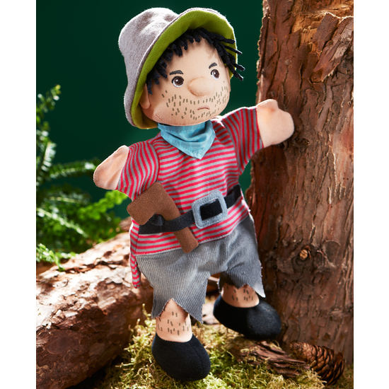 Die Haba Handpuppe Räuber ist ein ganz besonderer Charakter. Die Knubbelnase, der 3-Tage-Bart und eine Pistole zum Ankletten verleihen dem Räuber ein spektakuläres Äußeres. Die Kids werden staunen!