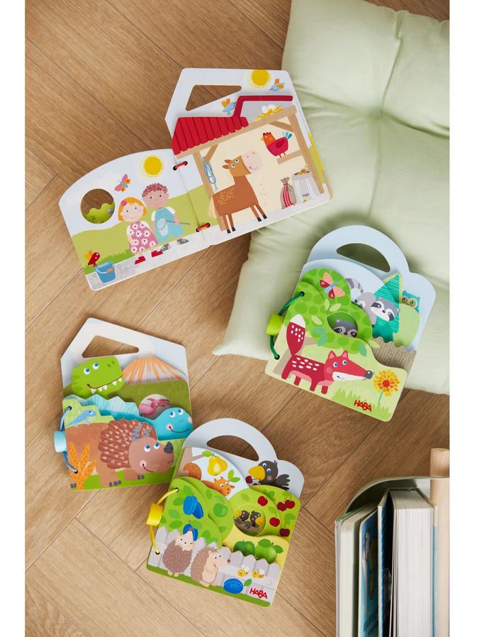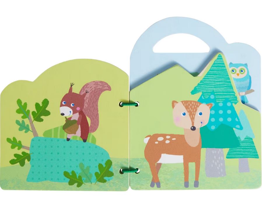 Das Haba Holz-Babybuch Waldtiere nimmt ganz junge Tier-Fans mit in den Wald. Wer gut aufpasst und etwas Geduld hat findet die schönsten Waldtiere in ihrer Welt: Fuchs, Waschbär, Reh und Eule suchen sich was leckeres zu futtern, vielleicht ja sogar für ihren Wintervorrat zum Verstecken! Hier lassen sich viele Dinge entdecken und spannende Waldgeschichten erzählen. Und überall hören wir Geräusche, die sich prima mit dem Mund nachmachen lassen. Die unterschiedlich geformten Seiten machen Spaß beim Durchblättern und mit dem praktischen Griffloch läßt sich das Buch überall hintragen.
