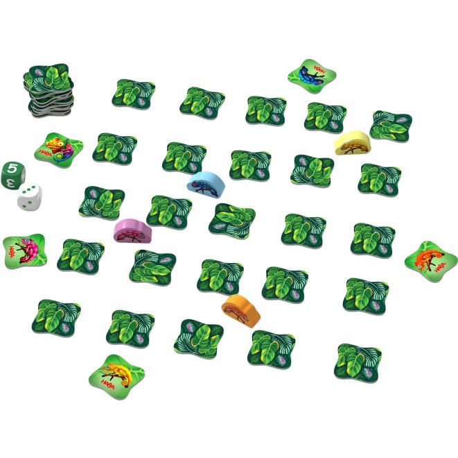 • enthält 4 Chamäleons aus Holz, Dschungel- und Chamäleon-Plättchen, Holz-Würfel, Anleitung