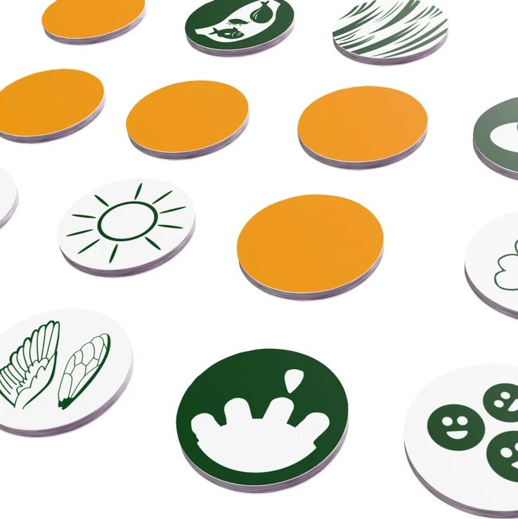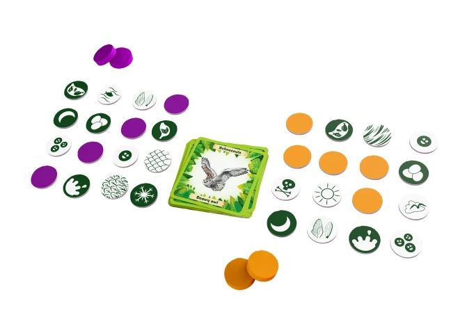 • Inhalt: 60 Tierkarten, 64 Eigenschaftsplättchen (16 pro Farbe), 8 Tipp-Chips (2 pro Farbe), 4 Beutel zur Aufbewahrung, 1 Spielanleitung.