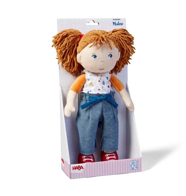 Stoffpuppe Malou von Haba ist immer dabei und immer für dich da. Sie ist eine wunderbare Stoff-Anziehpuppe, mit einem süßen Blick, - der Blick einer tollen Spiel-Freundin! Für endlose Spiel-Geschichten und natürlich auch zum vertrauensvollen Kuscheln. Einfach Malou!