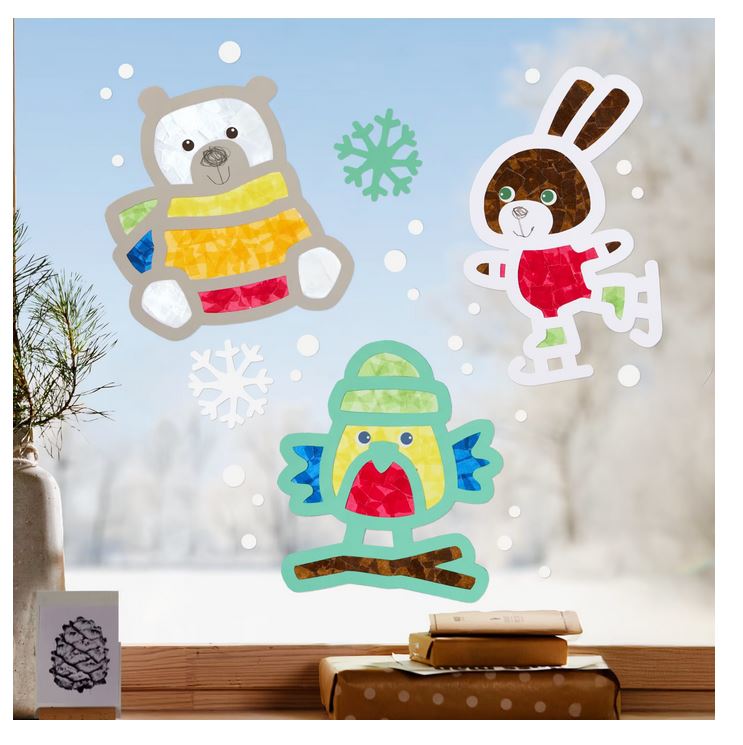 • beinhaltet 3 niedliche Fenster-Tiere: Bär, Vogel und Hase
